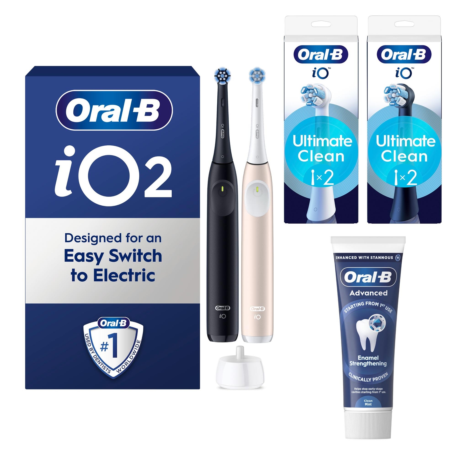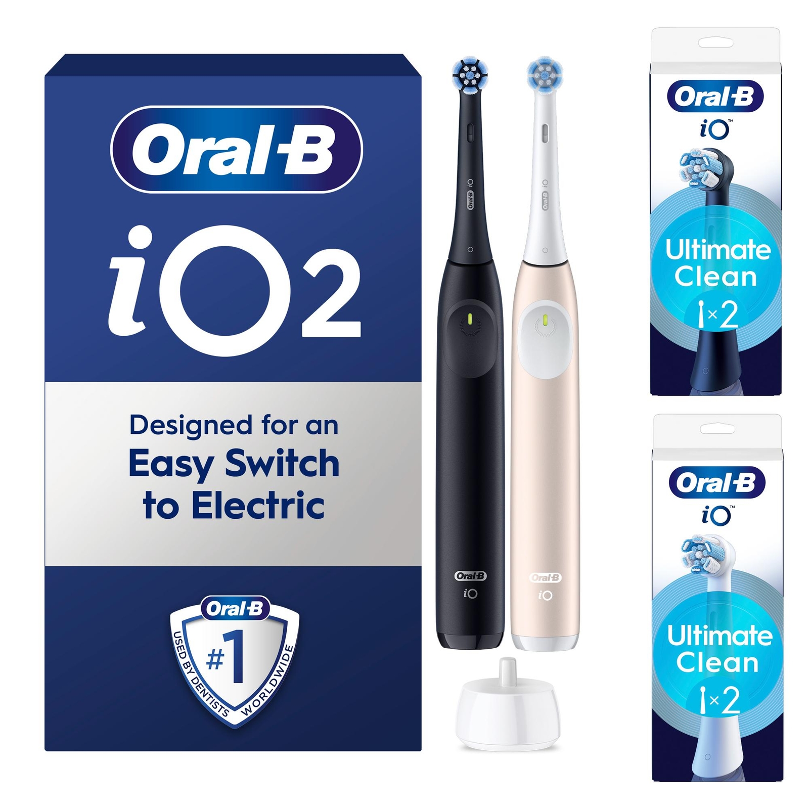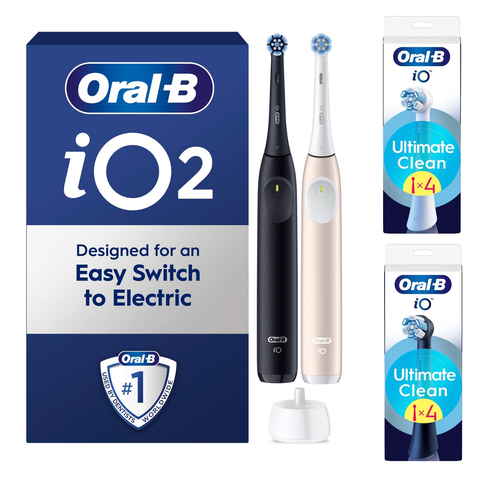 Oral-B iO2 Night Black & Calm Pink Electric Toothbrushes - With Toothpaste - Toothbrush + 4 Toothbrush Heads