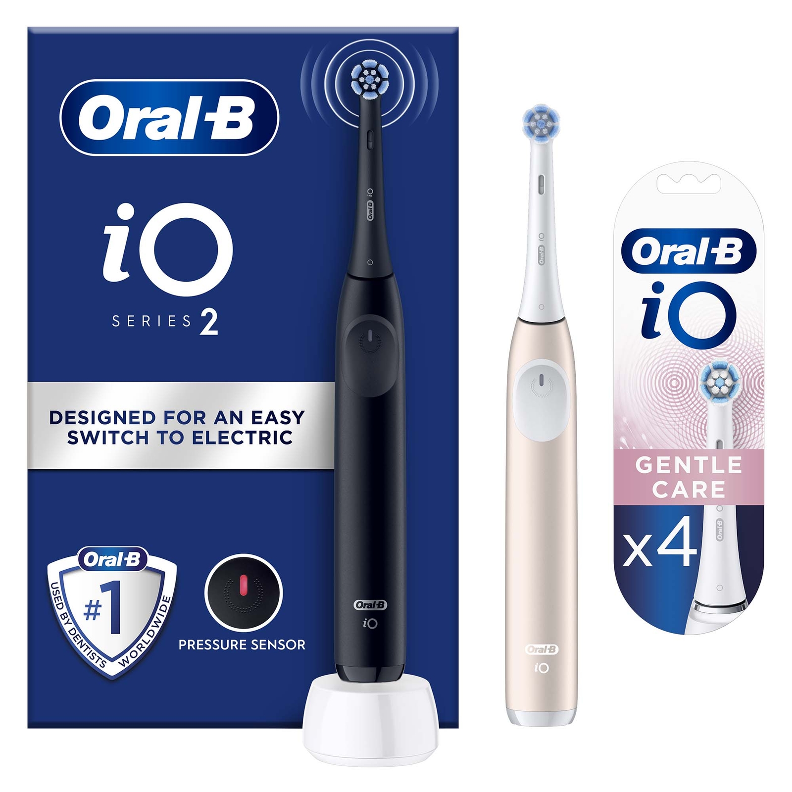 Oral-B iO2 Night Black & Calm Pink Electric Toothbrushes - Without Toothpaste - Toothbrush + 4 Toothbrush Heads (Gentle Care)