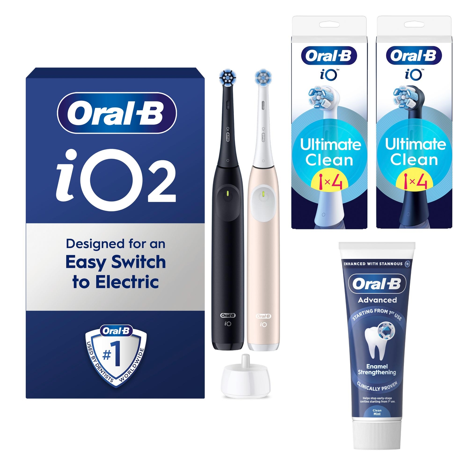 Oral-B iO2 Night Black & Calm Pink Electric Toothbrushes - With Toothpaste - Toothbrush + 8 Toothbrush Heads