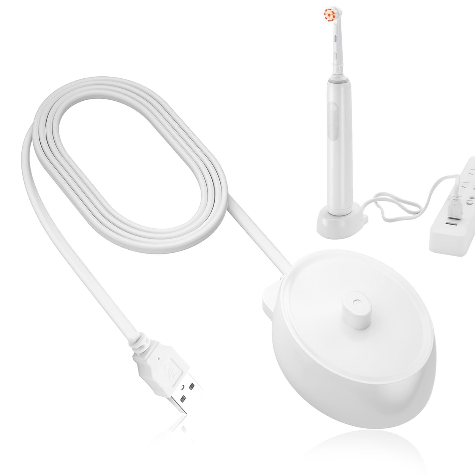 2X for Oral B Toothbrush Replacement Charger Power Supply Inductive Charging Holder Model 3757 USB Cable White
