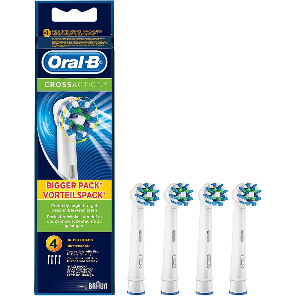 ORAL-B Pro Cross Action Electric Toothbrush Head, X-Shape And Angled Bristles for Deeper Plaque Removal, Pack of 4 Toothbrush Heads, White