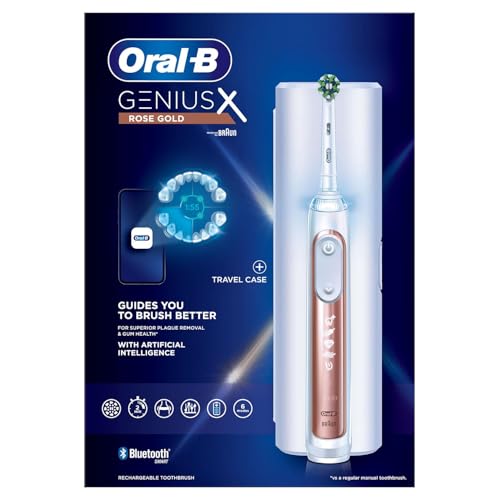 Oral-B Genius X Special Edition Rechargeable Electric Toothbrush, 1 Premium Rose Gold Handle with Artificial Intelligence, Brush, Travel Case Char