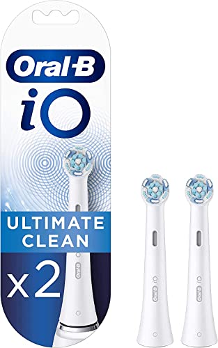 Oral-B iO Ultimate Clean Electric Toothbrush Head, Twisted & Angled Bristles for Deeper Plaque Removal, Pack of 2 Toothbrush Heads, White