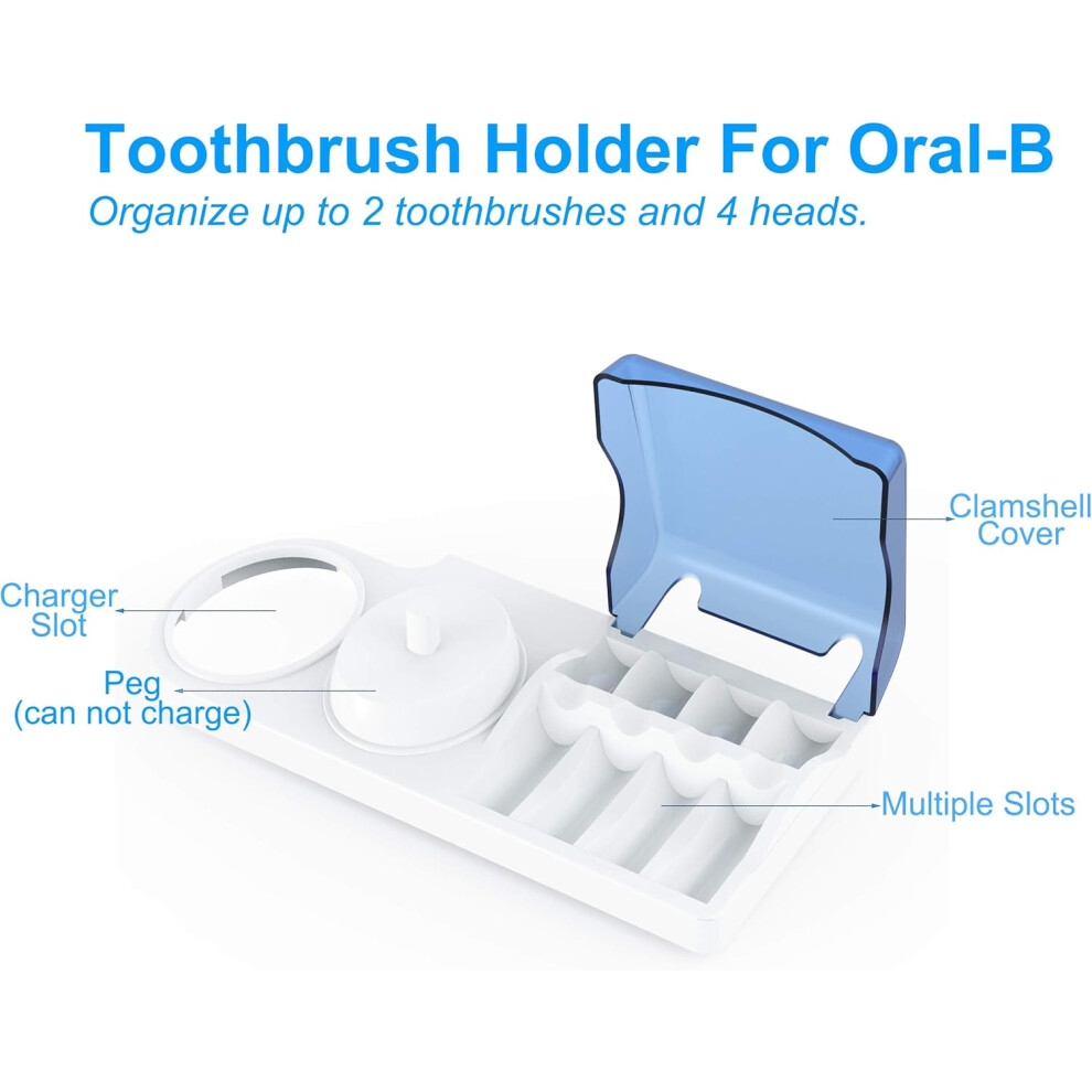 Oral B Electric Toothbrush Head Organizer, Space-Saving Design Dust-Free Protection Travel Cap For Oral-B Compatible Toothbrushes (2 Slots)