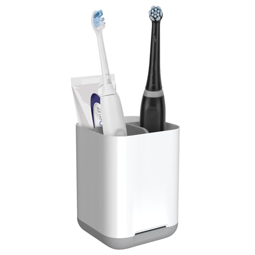 Linkidea Electric Toothbrush Holder for Bathroom, Electronic Tooth Brush and Toothpaste Storage Stand, Countertop 3 Slots Organizer Compatible with Oral-B iO Series, Philips Sonicare (Grey)