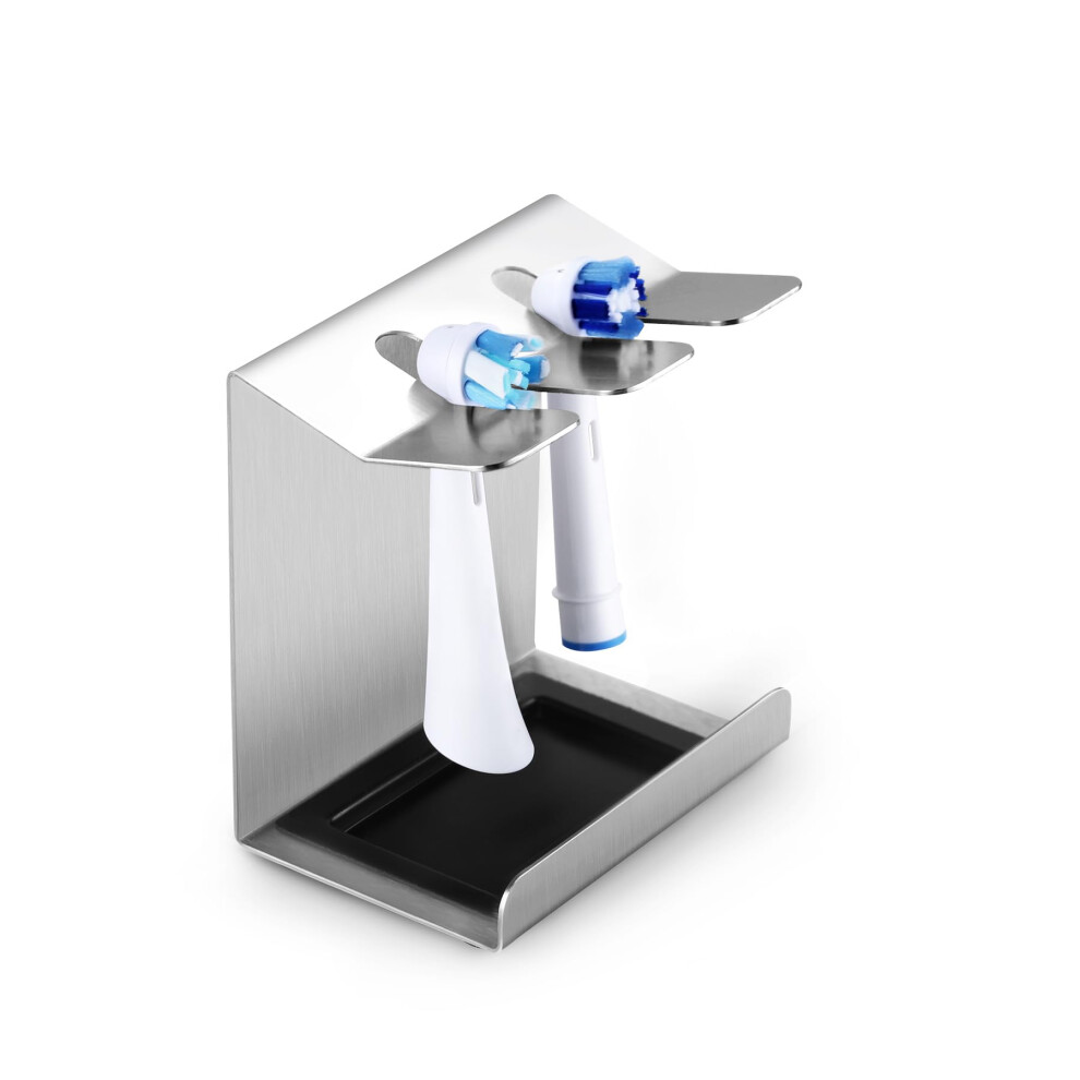 Siegvoll Stainless Steel Toothbrush Holder for Oral-B, iO, Philips Sonicare, etc. Toothbrush Holder with Collection Tray Brush Head Holder for 2
