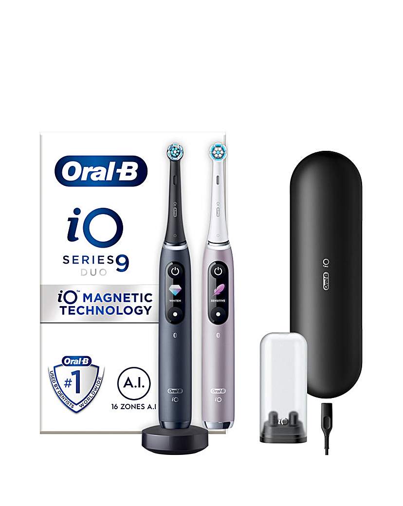 Oral-B iO9 2x Electric Toothbrushes For Adults, Oral B Electric Toothbrushes, Gifts For Women / Men, 2 Toothbrush Heads & Charging Travel Case, 7 Modes with Teeth Whitening, 2 Pin UK Plug, Black