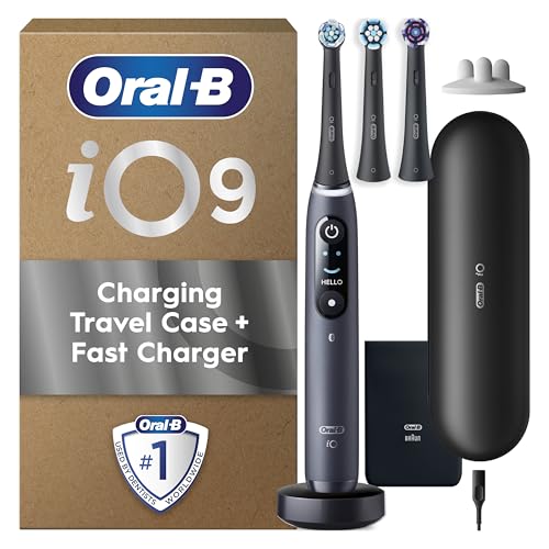 Oral B Electric Toothbrushes For Adults, Oral-B iO9, Gifts For Women / Men, App Connected Handle, 3 Toothbrush Heads, Charging Travel Case & Toothbrush Head Holder, 7 Modes, 2 Pin UK Plug, Black