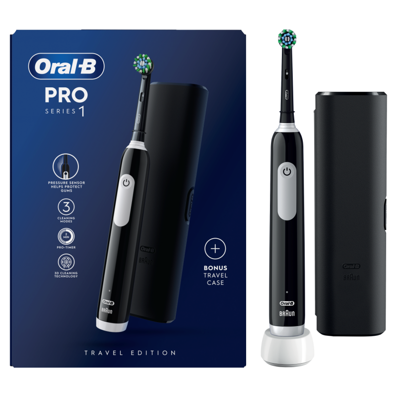 Oral-B Pro 1 Cross Action Black & Travel Case- Black
