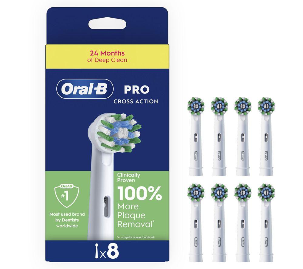 Oral-B Pro Cross Action Electric Toothbrush Head, X-Shape and Angled Bristles for Deeper Plaque Removal, Pack of 8 Toothbrush Heads, White