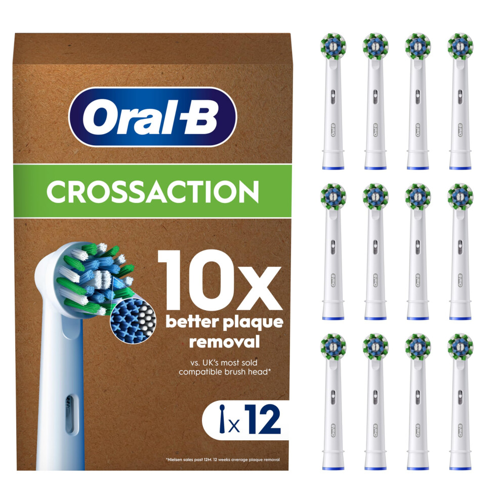 Oral-B Pro Cross Action Original Electric Toothbrush Head, X-Shape and Angled Bristles for Deeper Plaque Removal, Pack of 12 Toothbrush