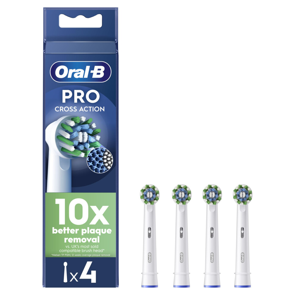 ORAL-B Pro Cross Action Electric Toothbrush Head, X-Shape And Angled Bristles for Deeper Plaque Removal, Pack of 4 Toothbrush Heads, White