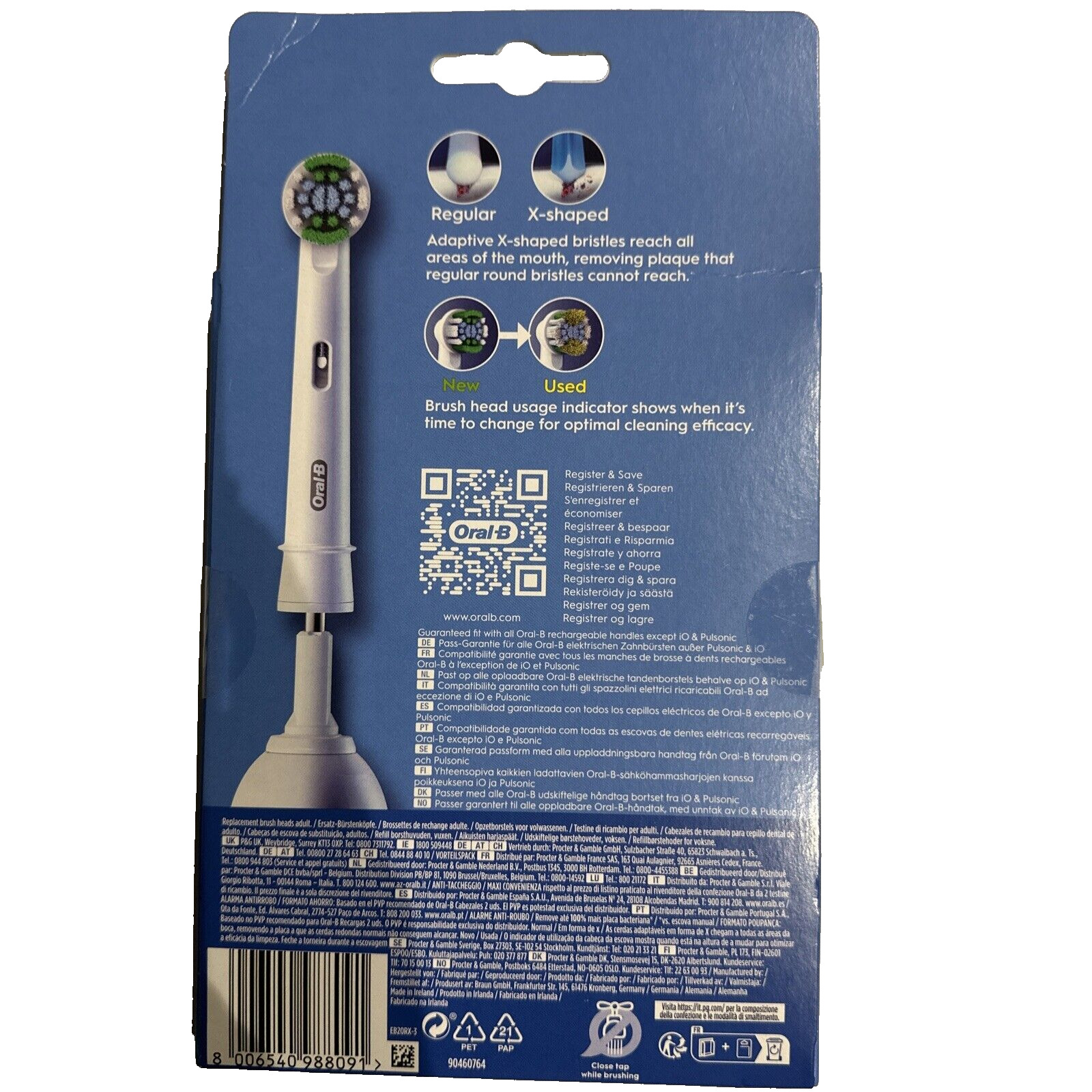 Oral-B PRO Cross Action white brush heads.3 pack. Adaptive X-shaped bristles.New