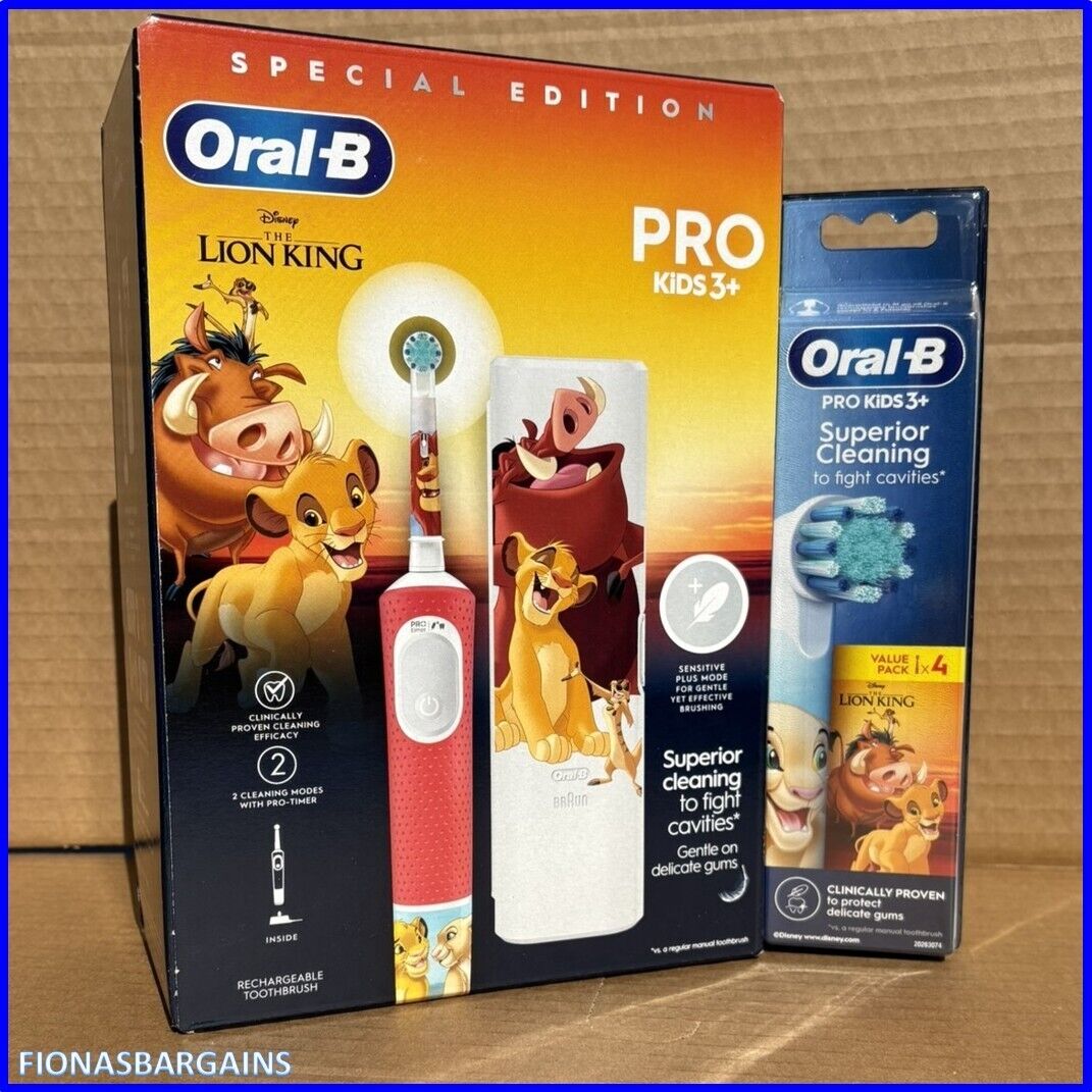 Oral-B Disney The Lion King Pro Kids 3+ Electric Toothbrush & 4 Refill Heads NEW