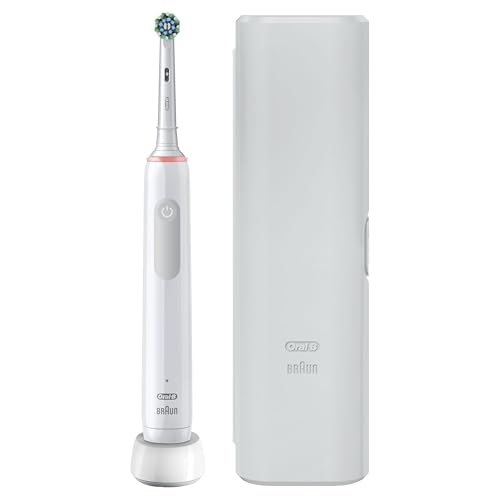 Oral-B Pro 3 Electric Toothbrushes For Adults, Oral B Electric Toothbrush, Gifts For Women or Men, 1 Cross Action Toothbrush Head & Travel Case, 3 Modes with Whitening, 2 Pin UK Plug, 3500, White