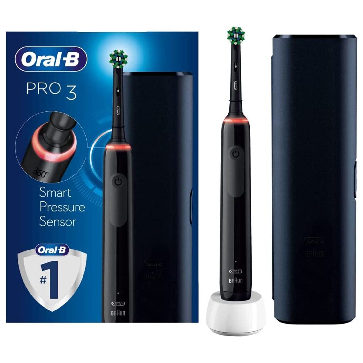 Oral B Pro 3 Electric Toothbrush With Smart Pressure Sensor & Travel Case Black