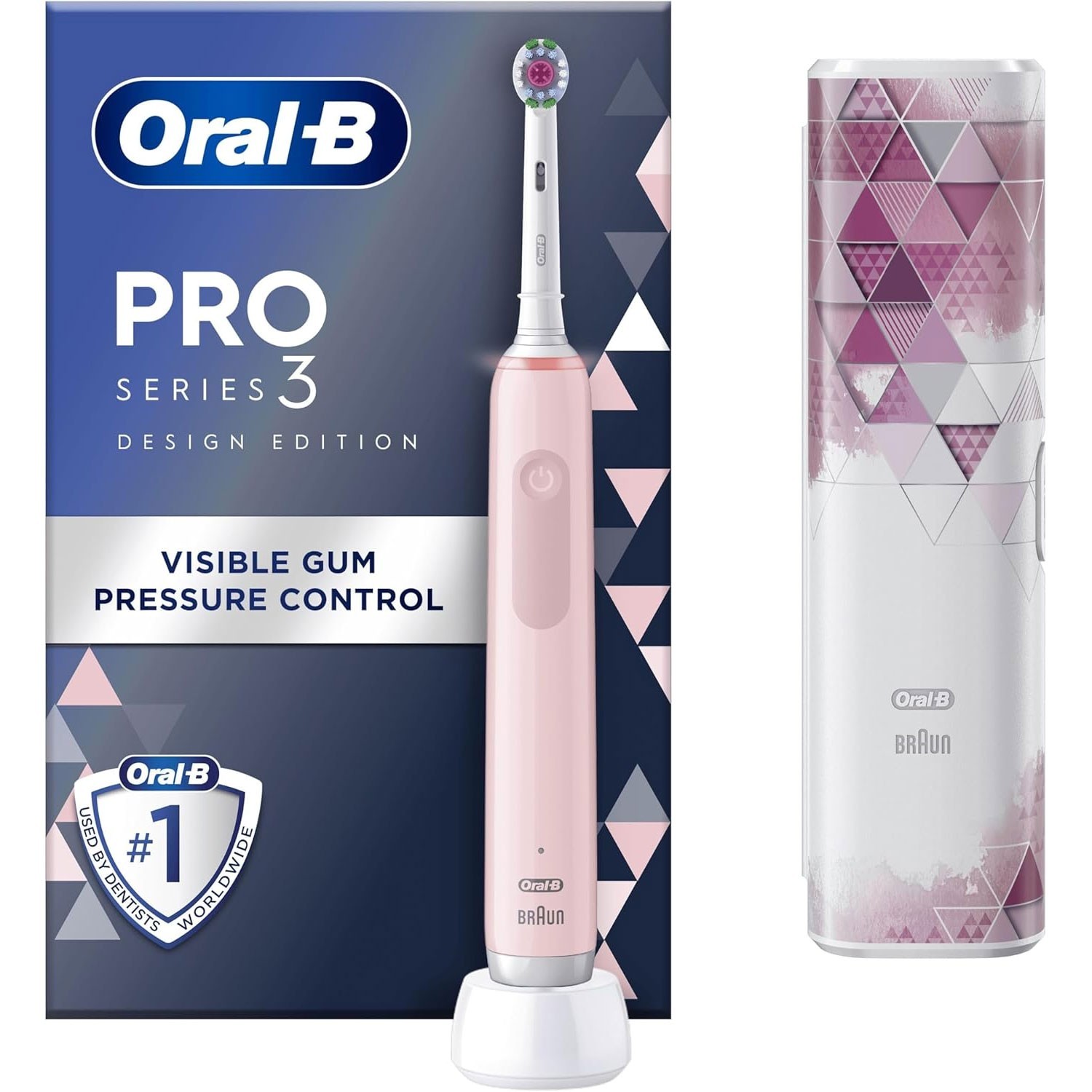 Oral-B Pro 3 3500 Pink Electric Toothbrush with Floral Art Travel Case