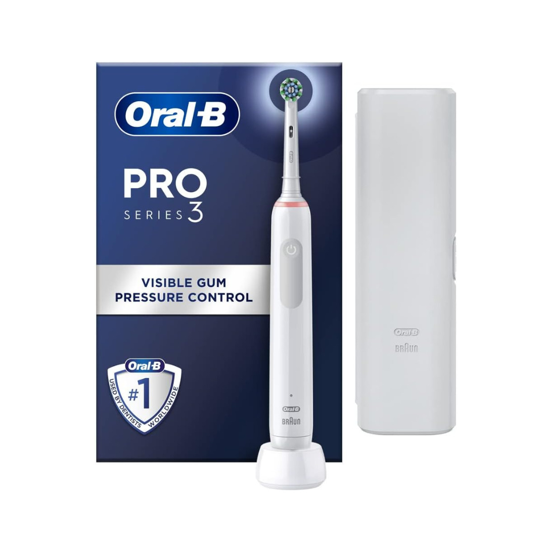 Oral-B Pro Series 3 Electric Toothbrush White + Case, 3 Modes, CrossAction Head