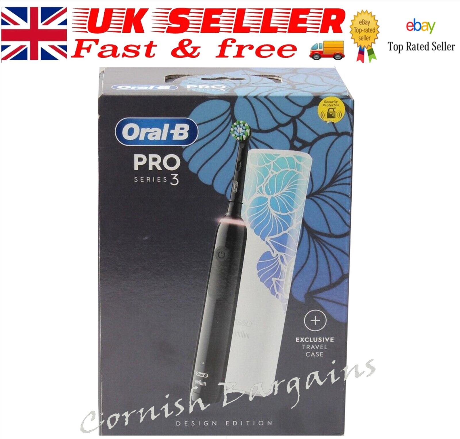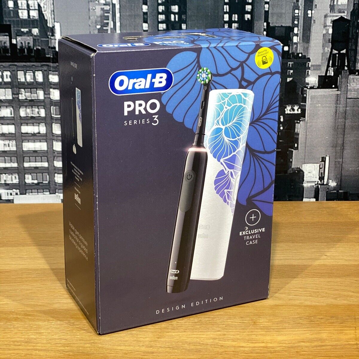 Oral-B Pro 3 3500 Electric Toothbrush with Floral Art Travel Case Black
