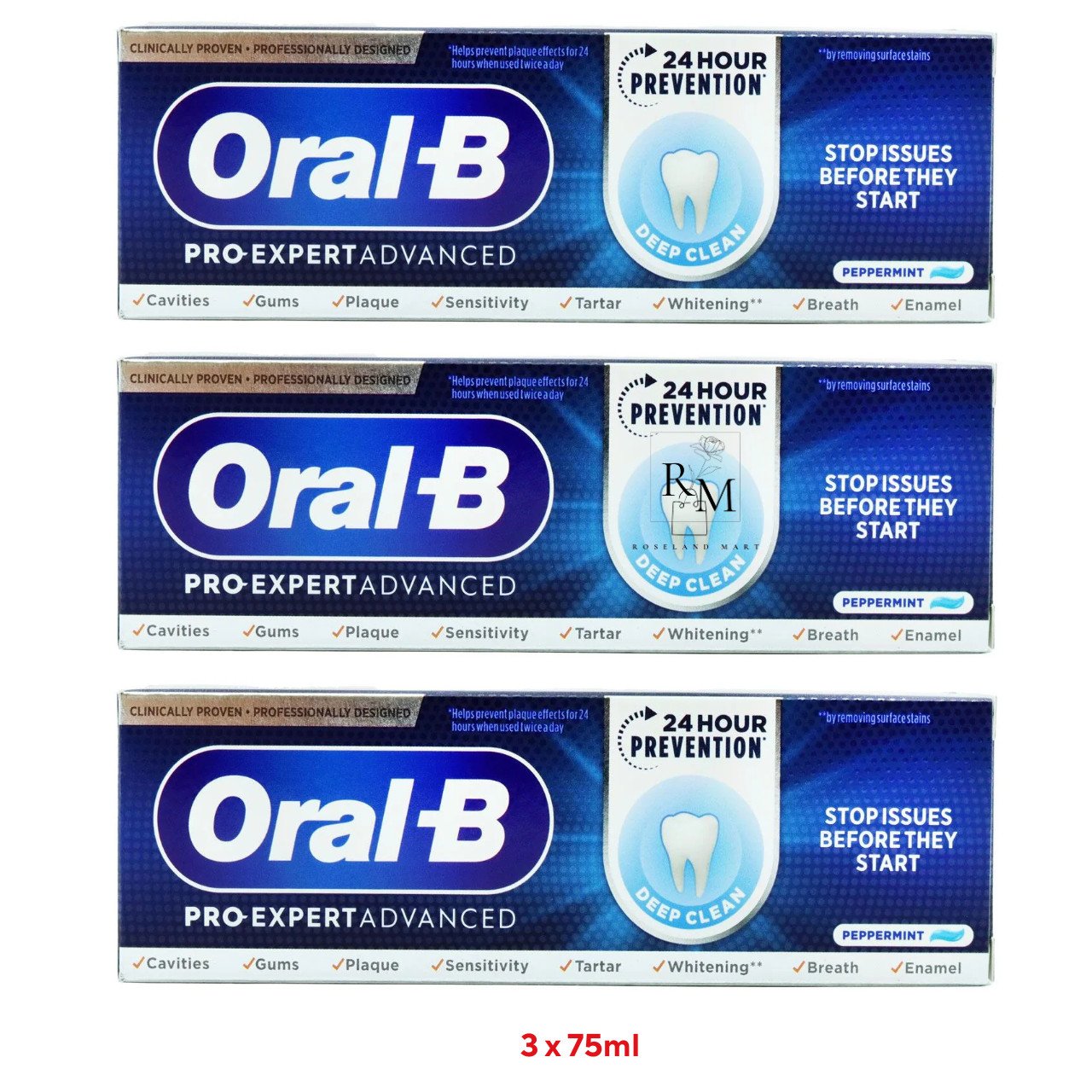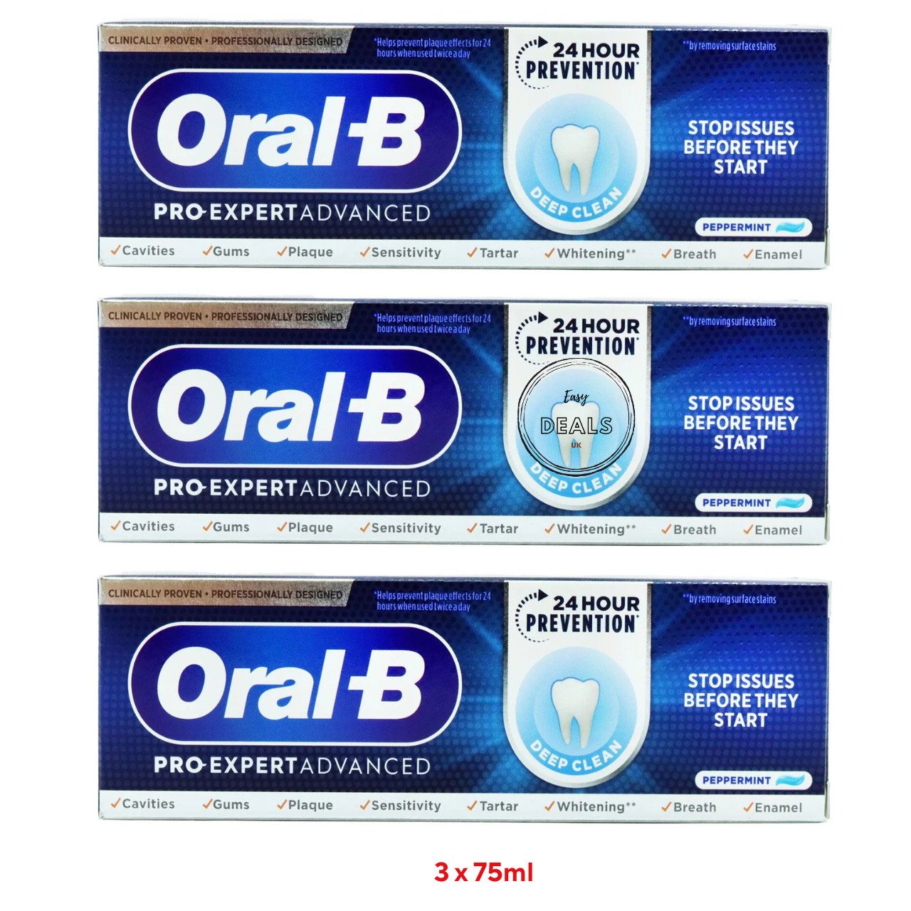3 x 75ml Oral B Pro-Expert Advanced Toothpaste DEEP CLEAN Peppermint- FREE POST