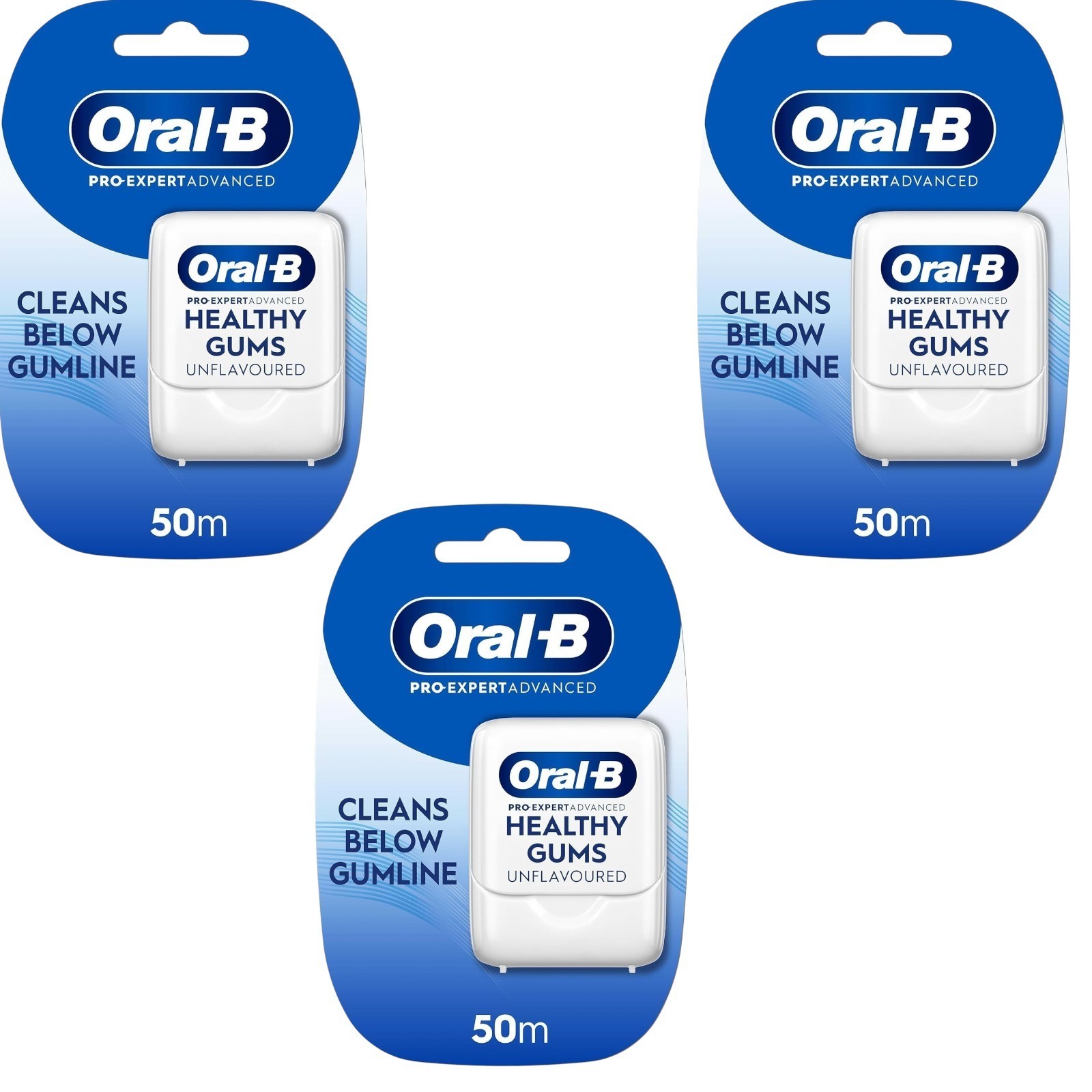 3 x Oral-B Pro-Expert Advanced Healthy Gums Unflavoured Waxed Floss Tape 50m