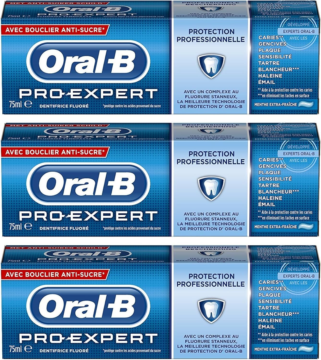 Oral-B Pro-Expert Fluoride Toothpaste with Sugar Shield Clean Mint 75ml x 3