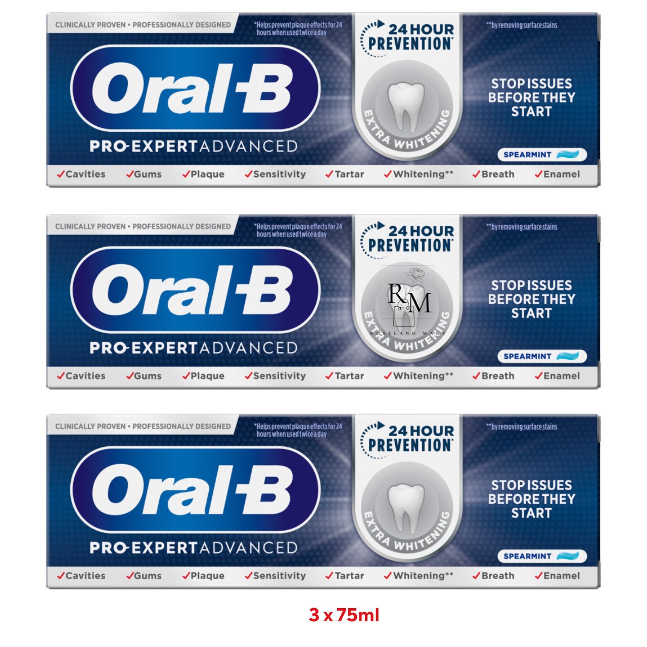 3 x 75ml Oral B Pro Expert Advanced Extra Whitening Toothpaste Spearmint