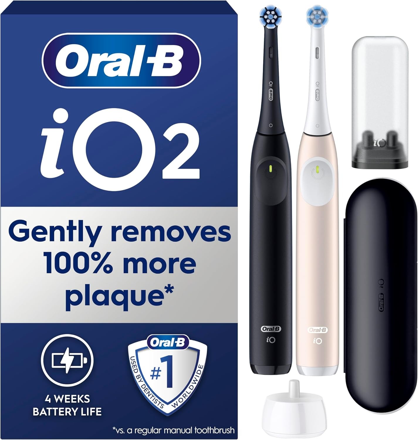 Oral-B iO2 Duo Electric Toothbrushes, 2 Gentle Care Toothbrush Heads