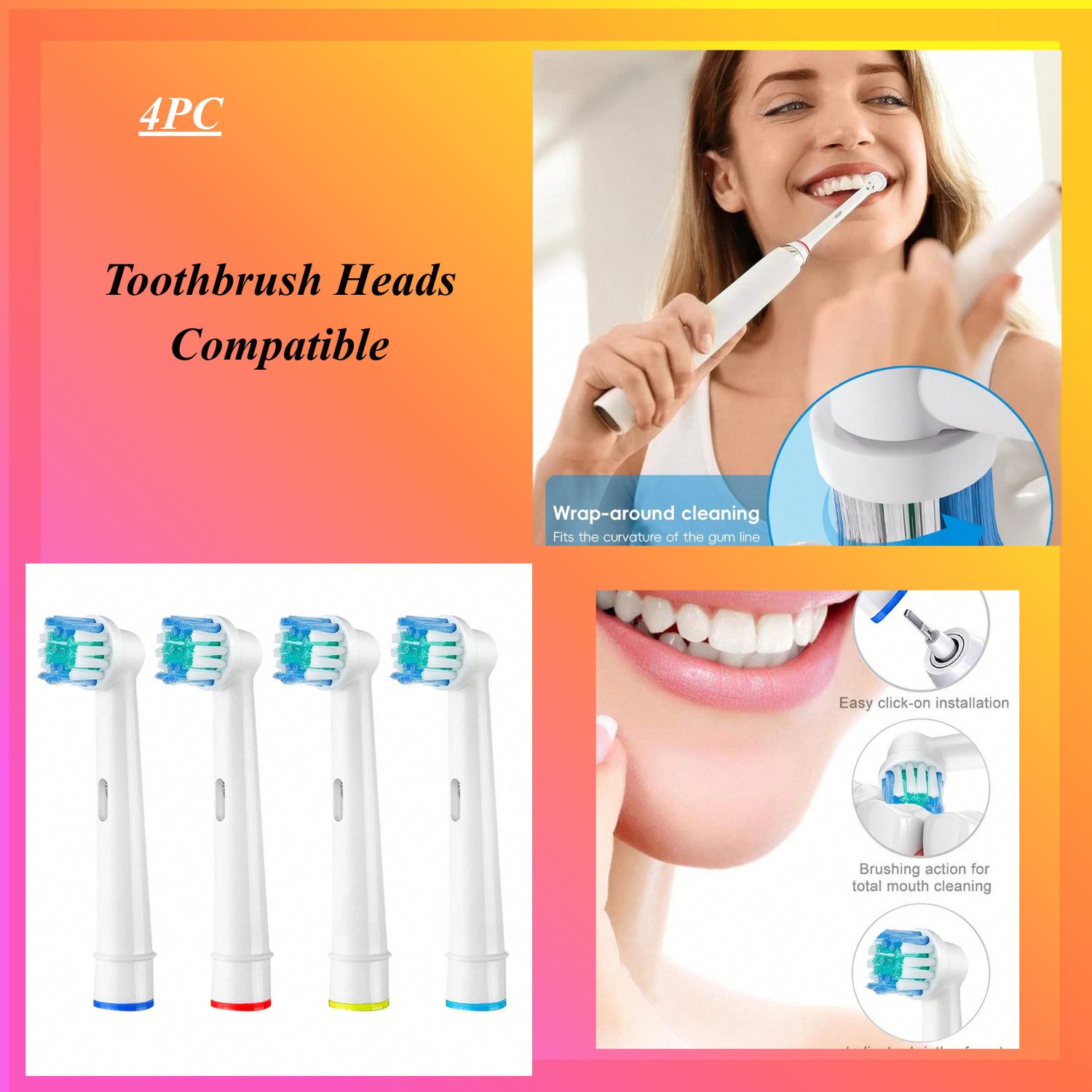 CASE & GLASS Electric 4 Replacement Toothbrush Compatible Oral-B, Compatible Oral-B Vitaly Precision Clean, White Clean, Sensitive Clean, Oral-B Professional Care, Model eb-17a/sb-17a (1kit x 4pcs)