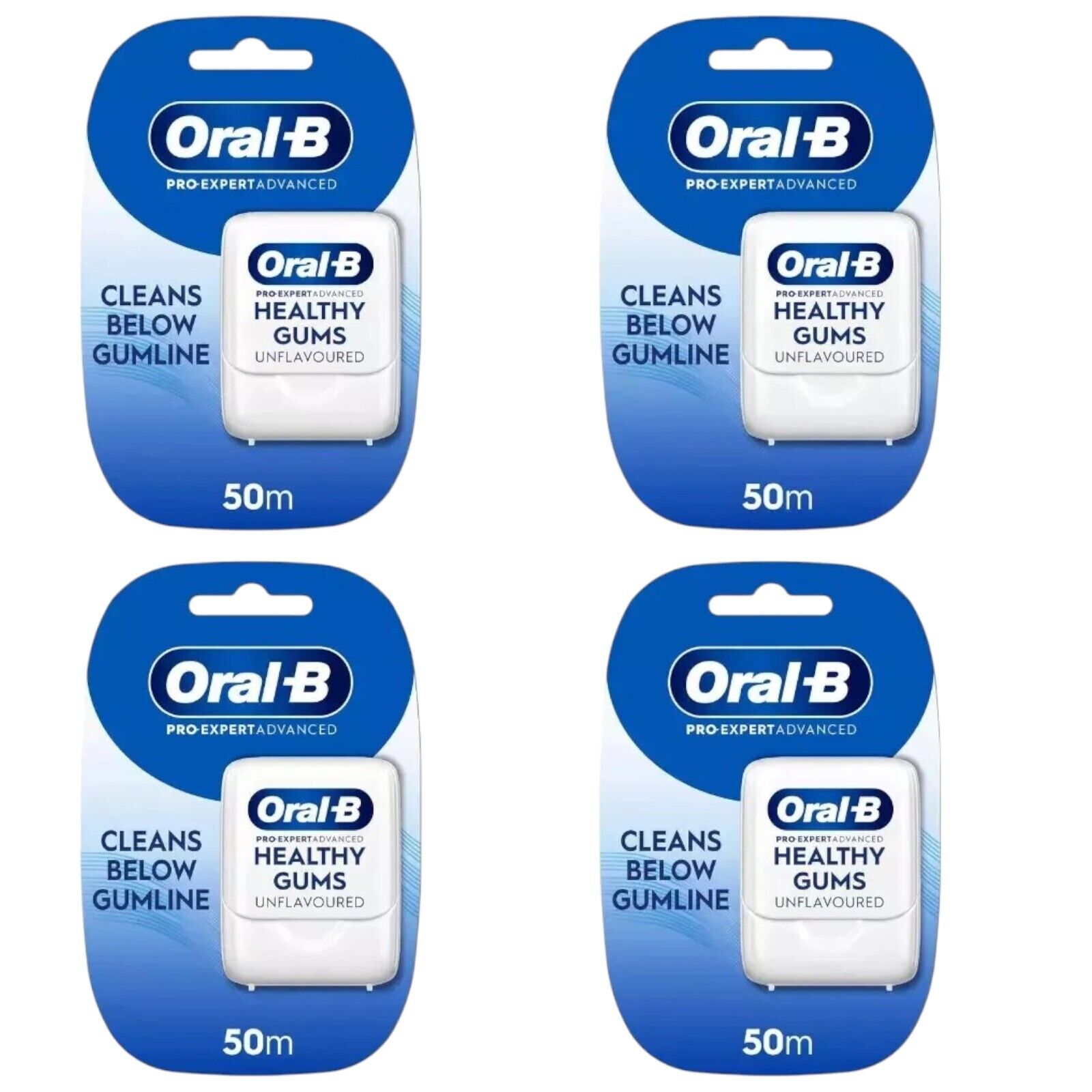 4 x Oral-B Pro-Expert Advanced Healthy Gums Unflavoured Waxed Floss Tape 50m