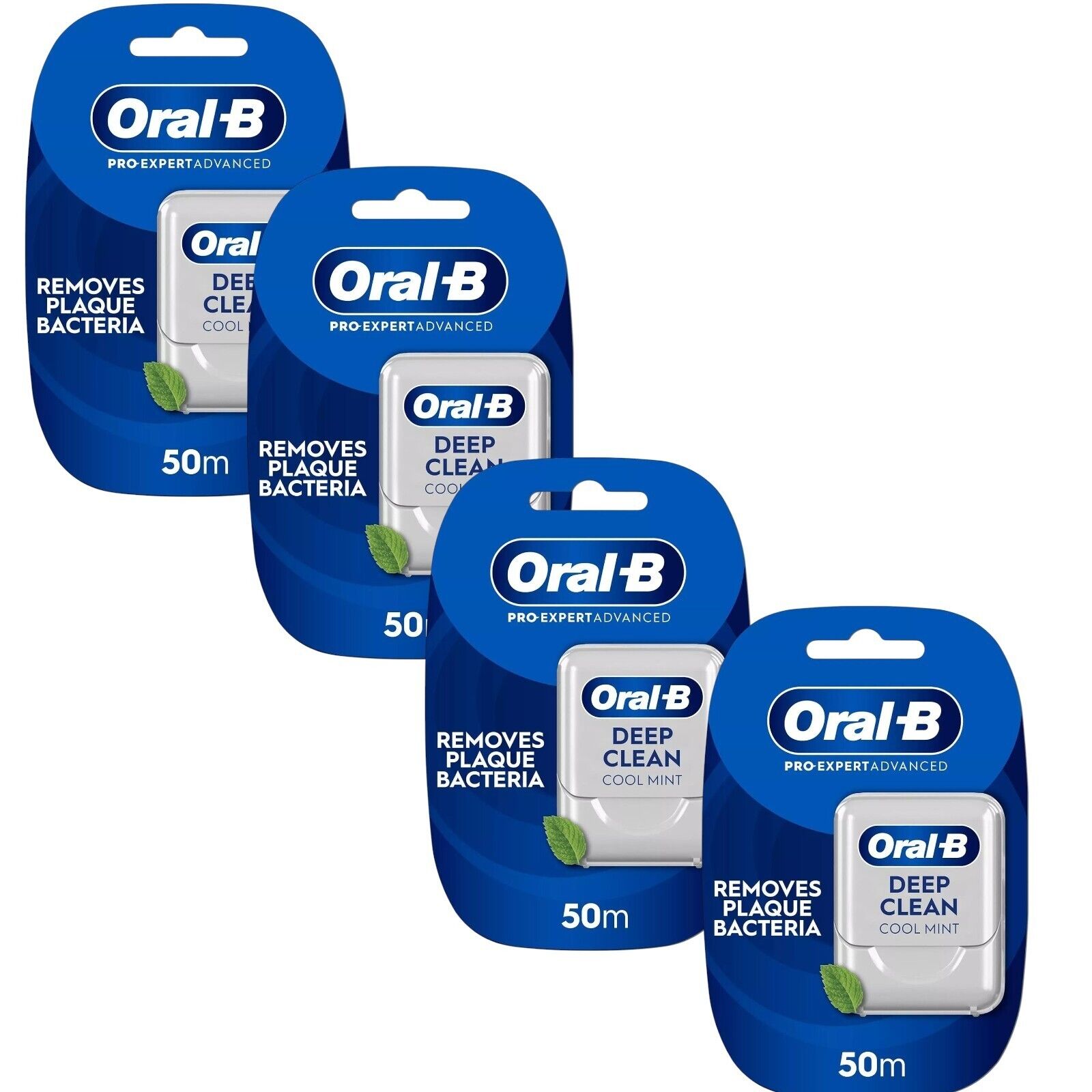 4 x Oral-B Pro-Expert Advanced Deep Clean Cool Mint Waxed Floss Tape 50m