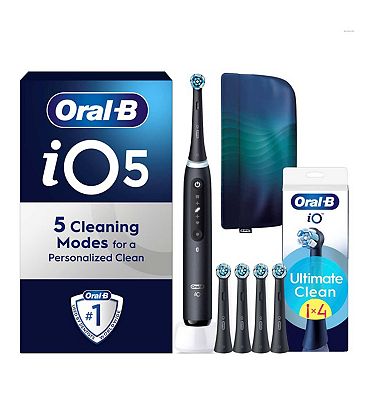 Oral-B iO5 Matt Black Electric Toothbrush + Travel Pouch & iO Ultimate Clean Black Toothbrush Heads 4 Pack Bundle