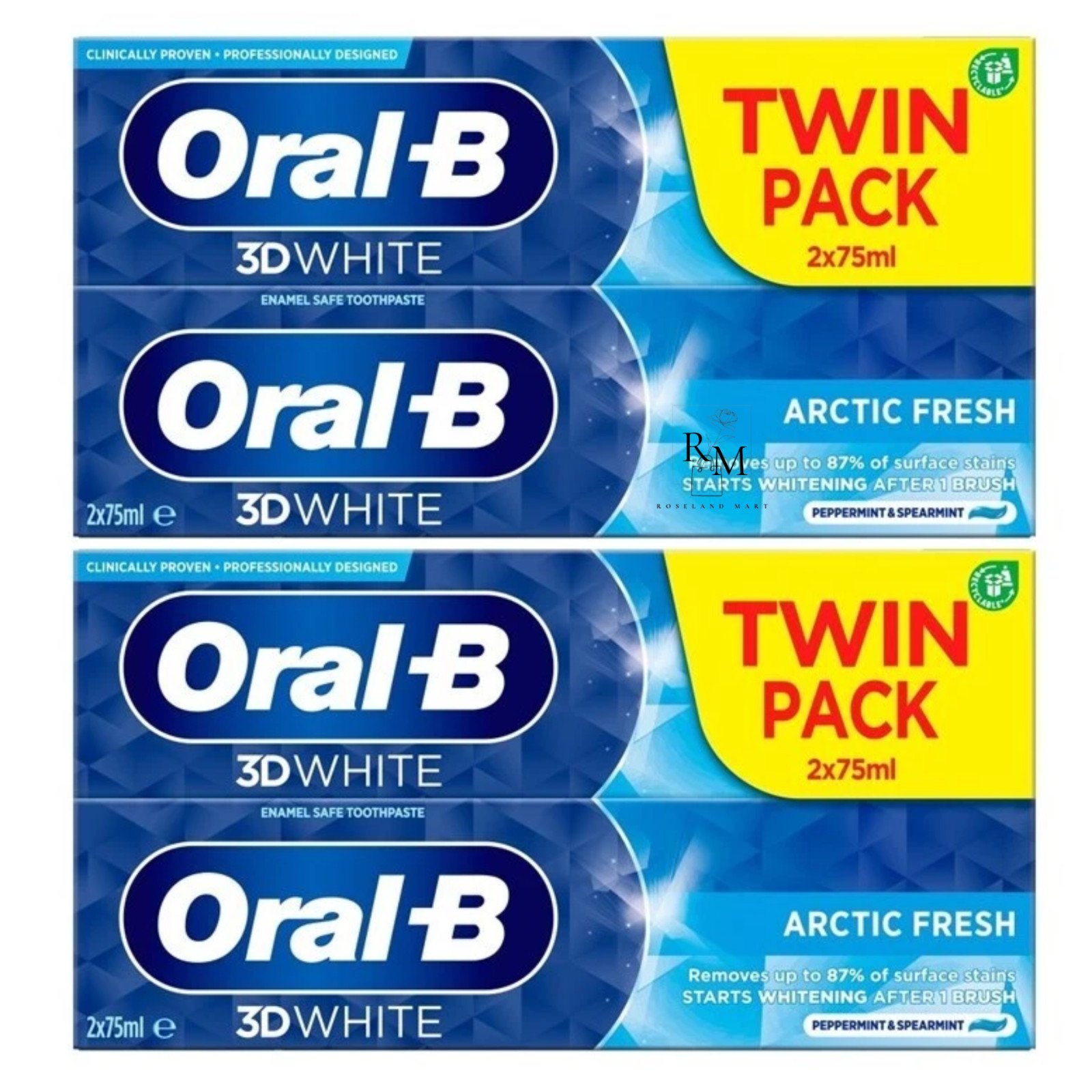 4 x 75ml Oral-B 3D White Arctic Fresh Whitening Toothpaste Twin Pack - MINT