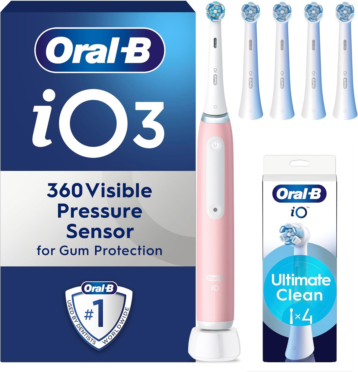 Oral-B iO3 Electric Toothbrushes Adults, 5 Toothbrush Heads, 3 Modes With Teeth