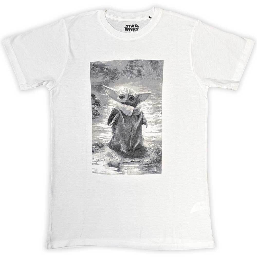 (M, White) Star Wars T Shirt The Mandalorian Grogu B&W new Official Mens White
