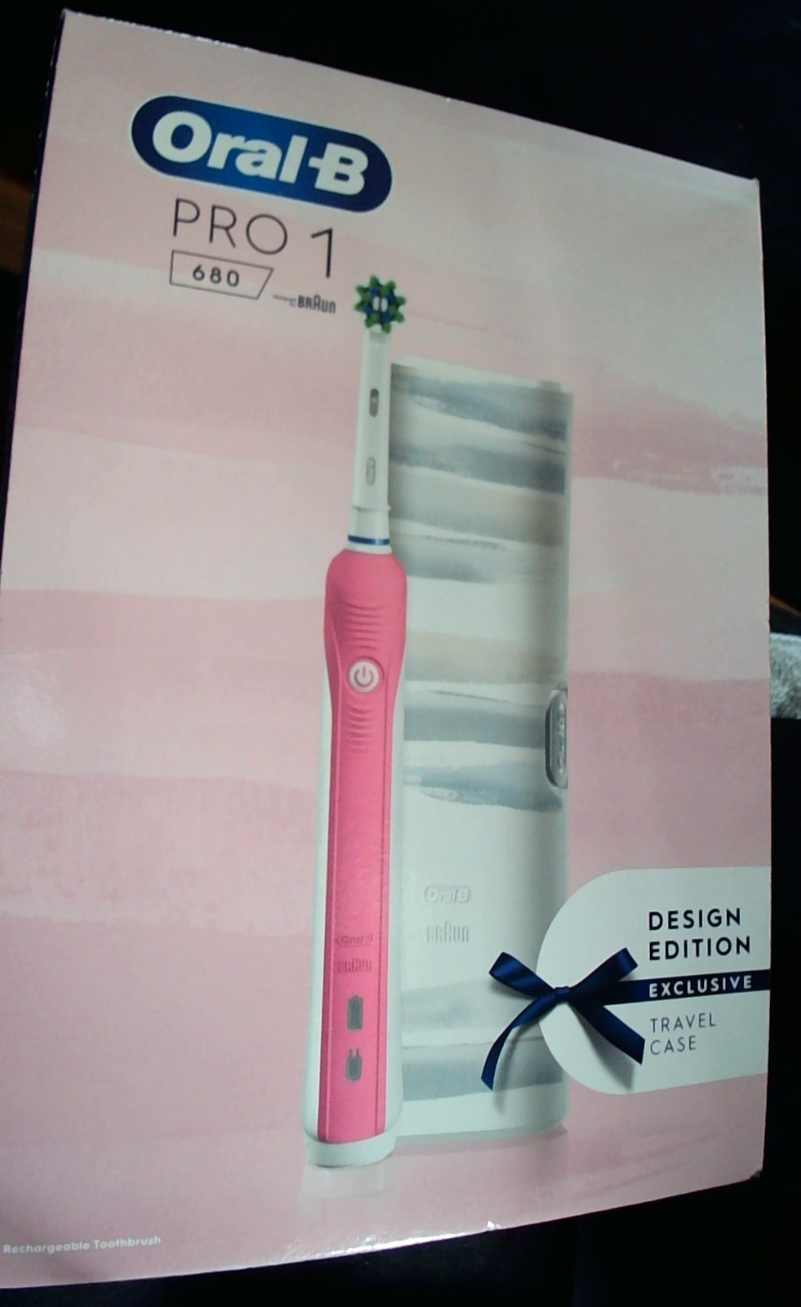 Oral-B PRO 1 680 Pink Design Edition Rechargeable Toothbrush + Travel Case