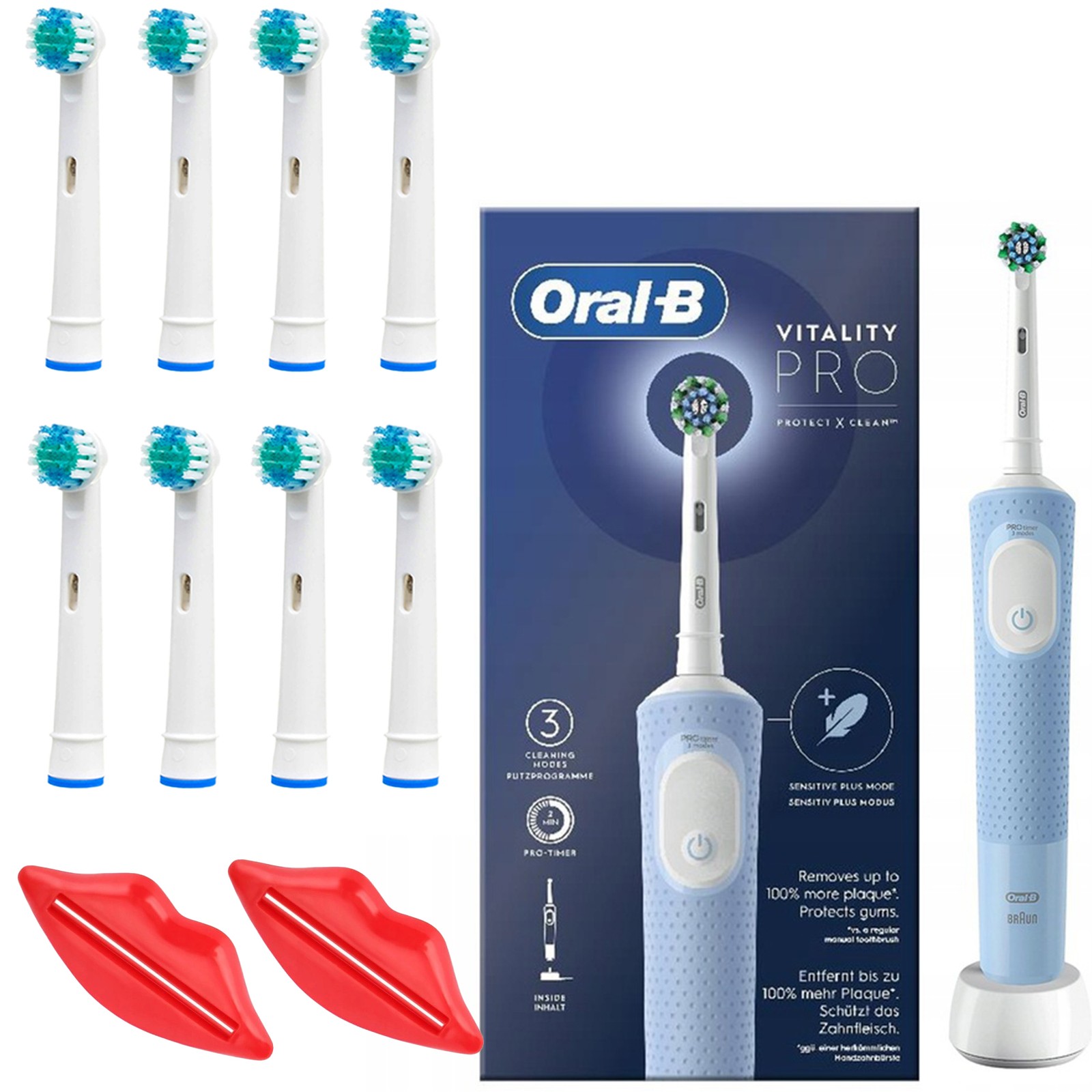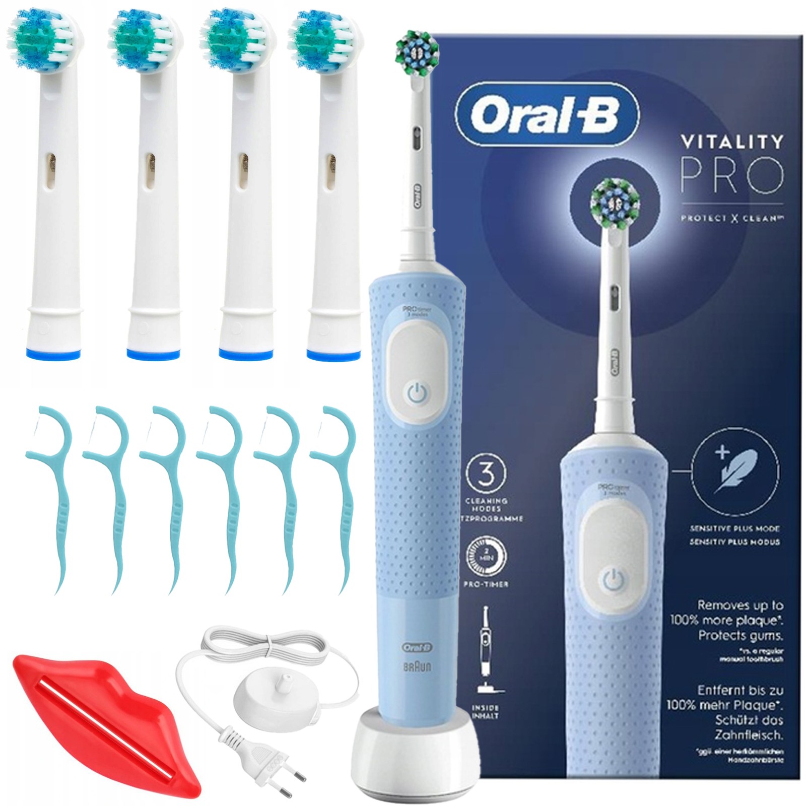 ORAL-B VITALITY PRO ELECTRIC TOOTHBRUSH BLUE + ACCESSORIES brush heads