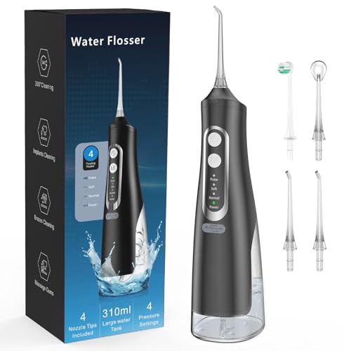AUIEI Water Flosser for Teeth Cordless, Professional Oral Irrigator 5 Modes & 4 Jet Tips USB-C Rechargeable Teeth Cleaner Portable 300ML Dental Tooth Care Tool Kits Home Use Travel (Black)