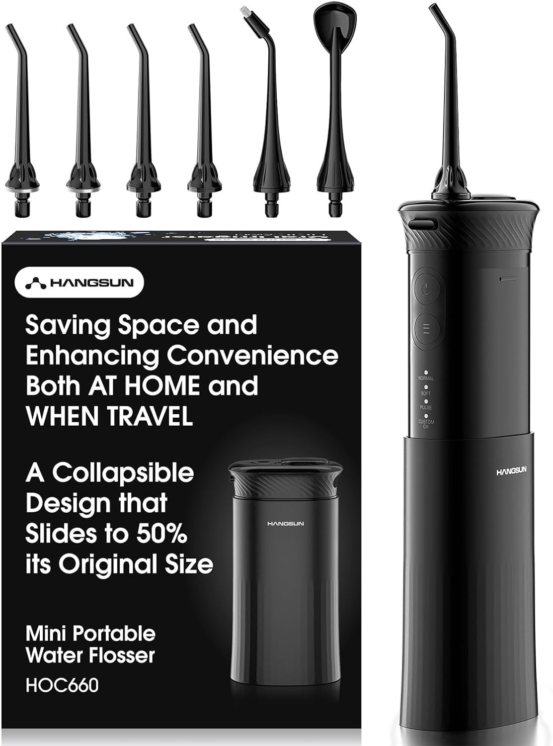 Hangsun Water Flosser for Teeth Cordless Oral Irrigator Dental Water Jet Electric Tooth Flosser with 8 Jet Tips 300ML Water Tank USB Rechargeable for Tavel and Home Use (Black)