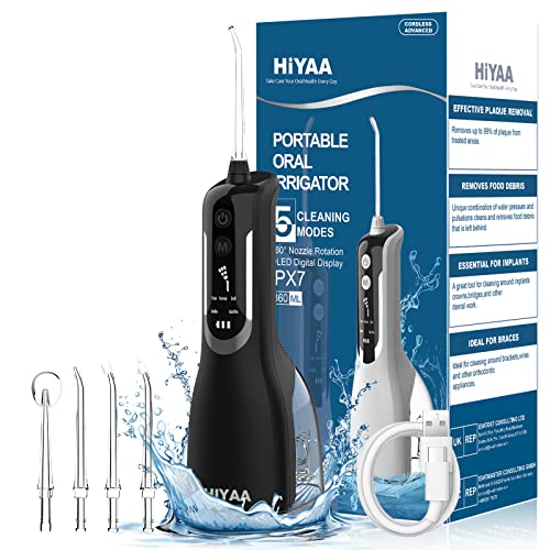 Water Flossers for Teeth Cordless and Oral Irrigator Dental Flosser with 5 Modes, 360ML Portable Dental Water Flosser with 4 Jet Tips & USB Rechargeable Use for Travel-Black