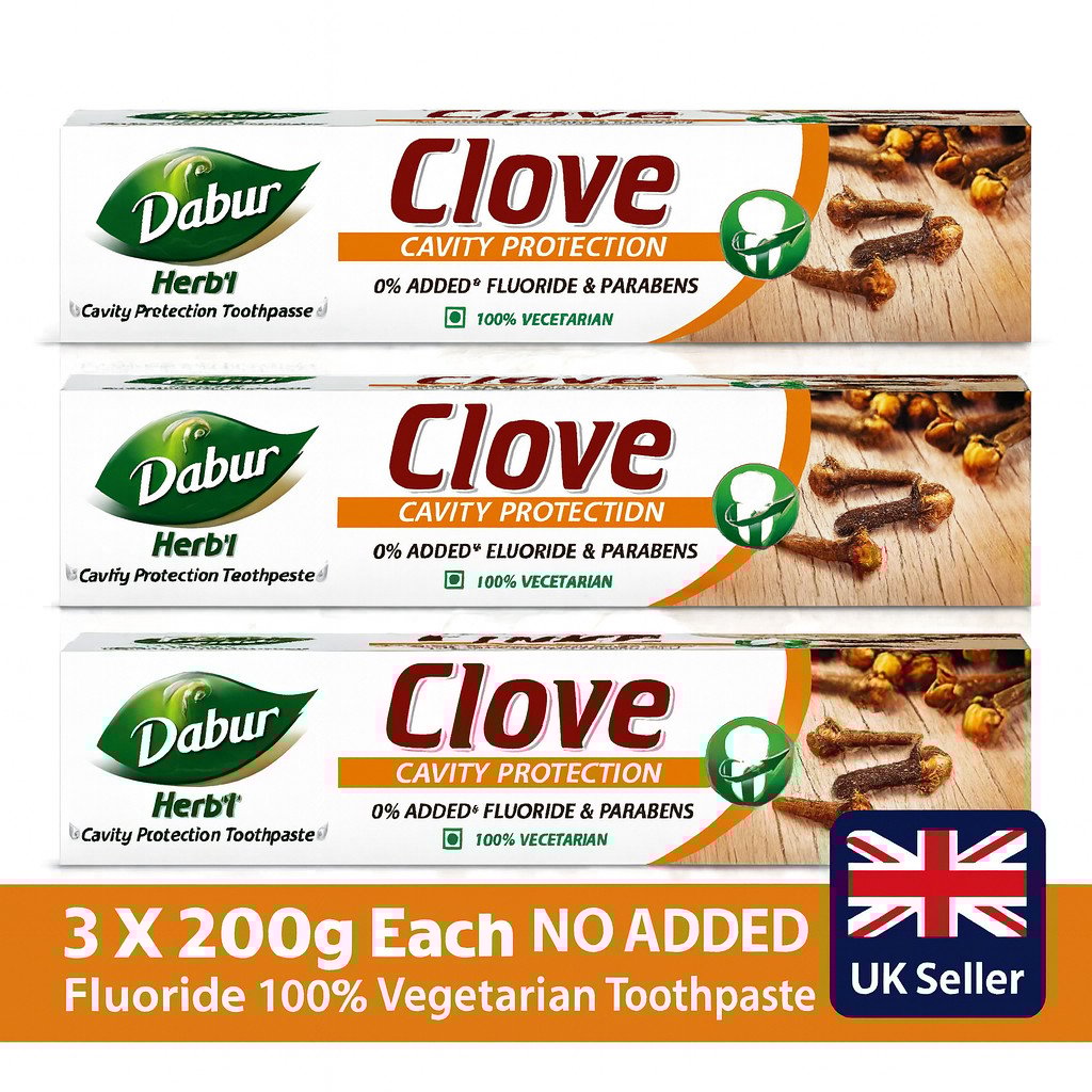 3 X Dabur Herbal Clove Cavity Toothpaste Oral Gums Care Fluoride-Free & Vegan UK