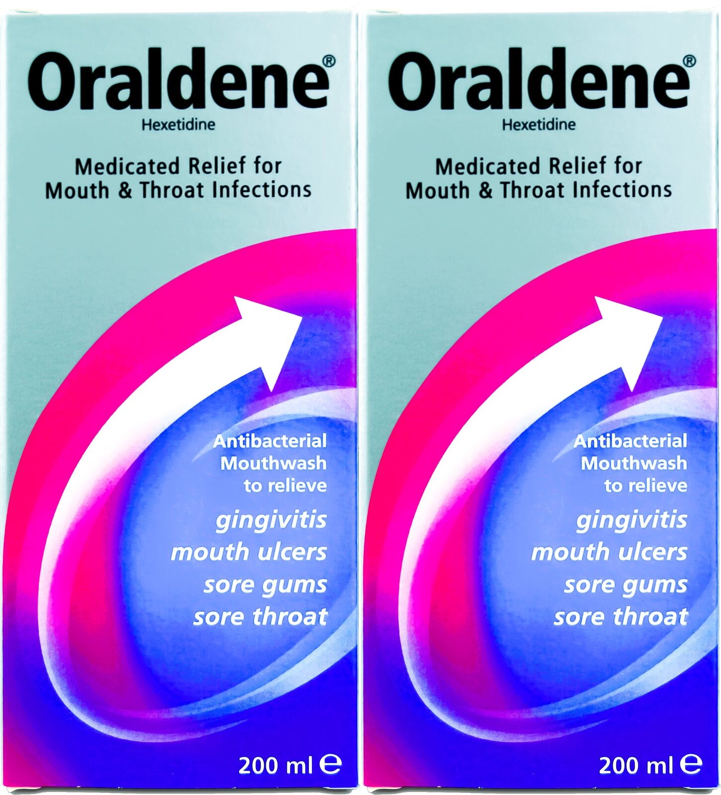 2 X Oraldene Medicated Relief For Mouth & Throat Infection, 200ml X 2 Exp:07/26