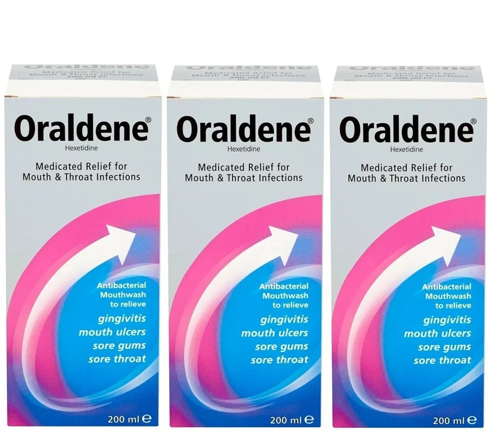 Oraldene Hexetidine Antibacterial Mouthwash, 3 Pack, 200 ml