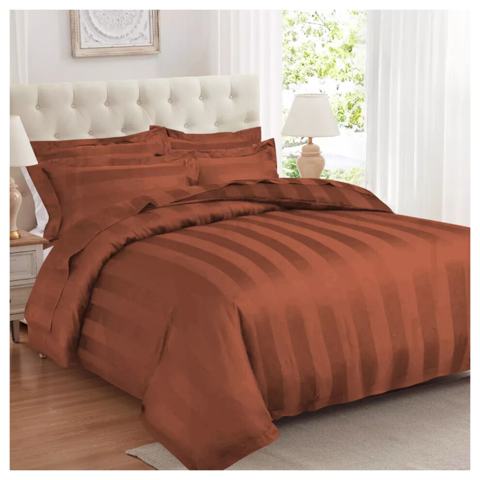 (Rust/Orange, King) Stripe Duvet Cover Set Bed Quilt & Pillowcase Pair