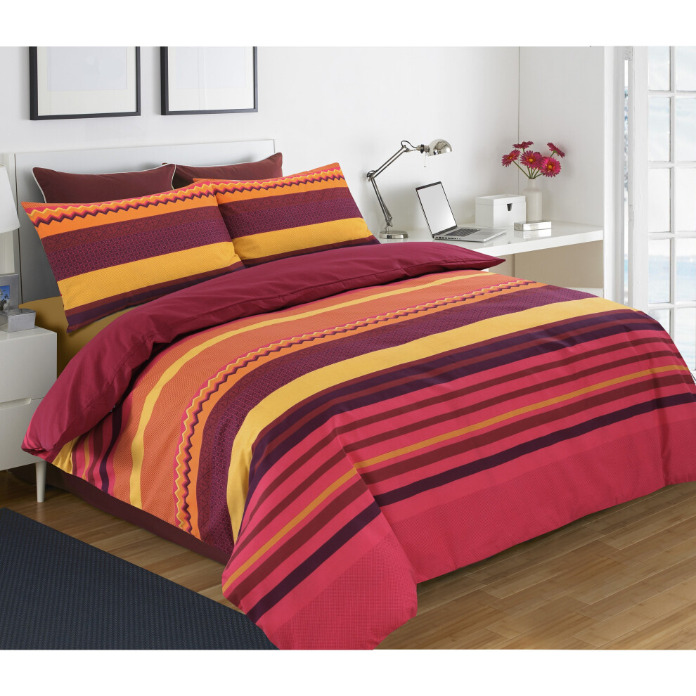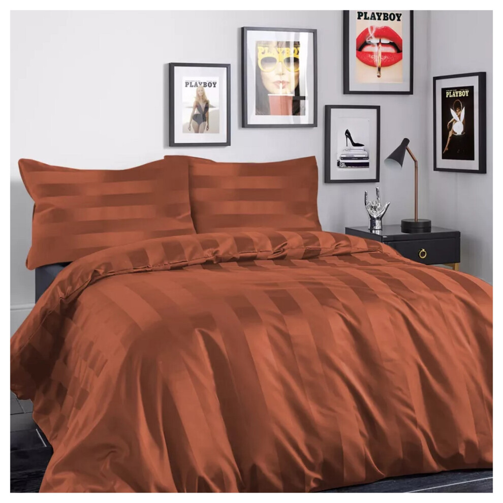 (Rust/Orange, Double) Stripe Duvet Cover Set Bed Quilt & Pillowcase Pair