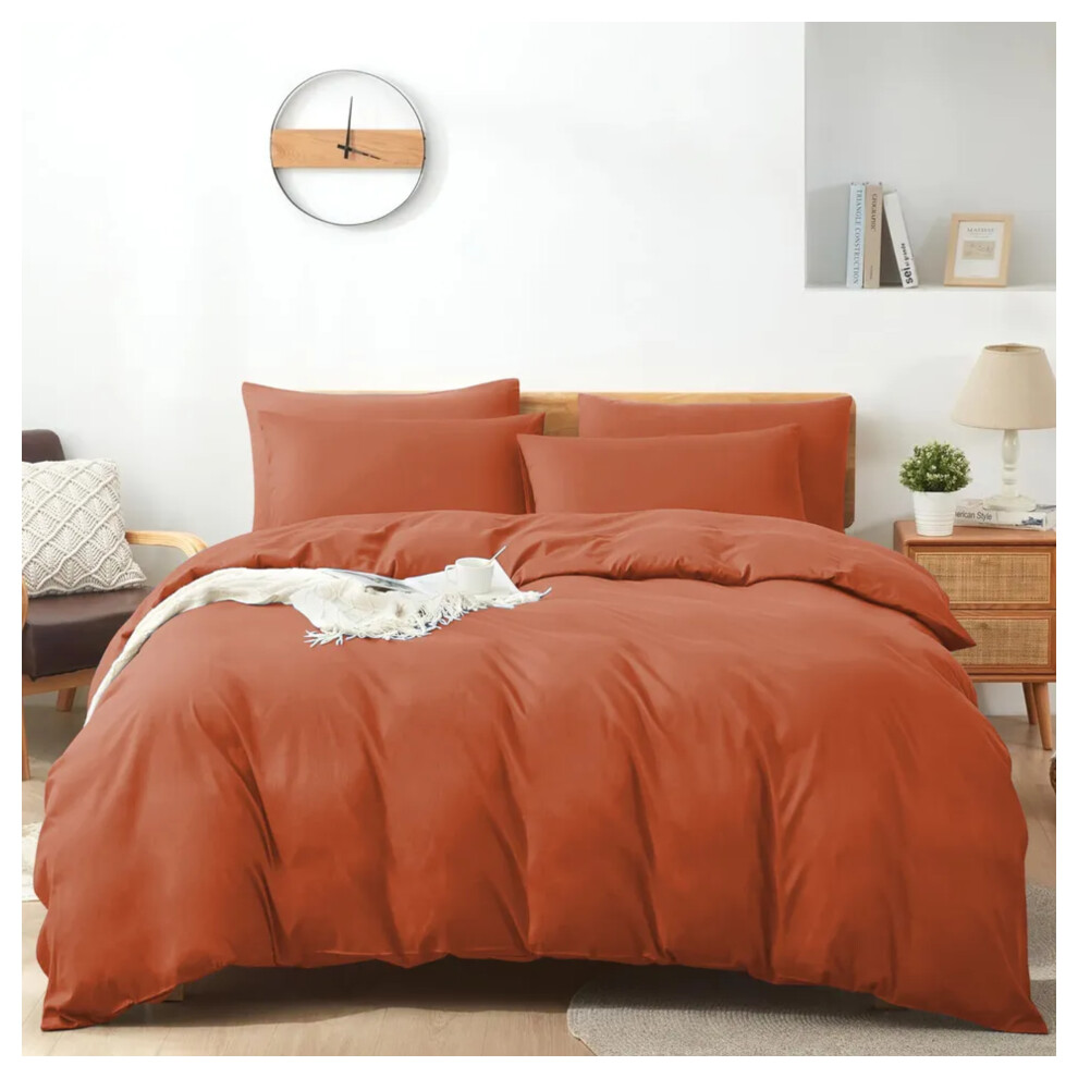 (Double Duvet Cover & Fitted Sheet, Rust/Orange) Plain Duvet Cover Set Fitted Sheets & Pillowcase