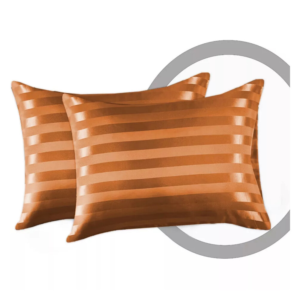 (Stripe Pillowcase Pack of 2, Rust/Orange) Stripe Duvet Cover Reversible Bedding Quilt Set UK