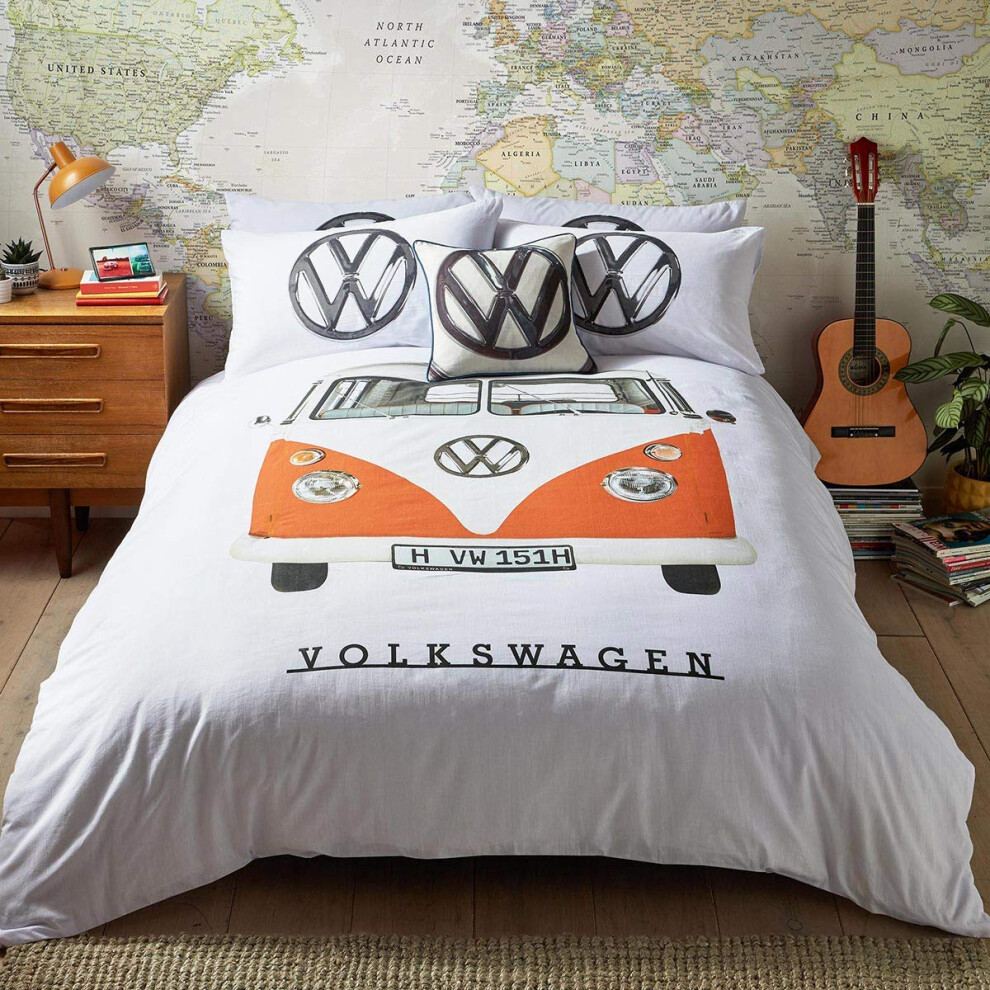 VW Official Bedding - Orange Campervan Duvet Cover Set (King Size Duvet Cover Set 228cm x 218cm)