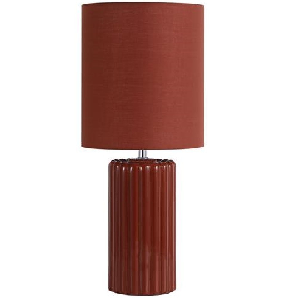 Burnt Orange Ribbed Ceramic Vintage Table Lamp with Linen Drum Shade 51cm