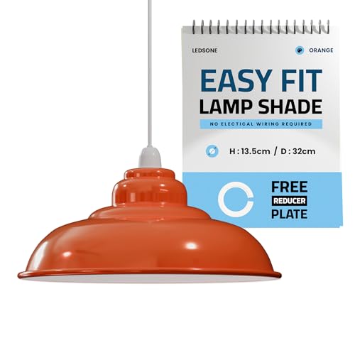 LEDSone Industrial Metal Orange Ceiling Pendant Light Shades, 29cm Retro Vintage Style Curvy Dome Shaped Easy fit Lamp Shade for Pendant Ceiling Lights for Light Fixture Pub Cafe Restaurants